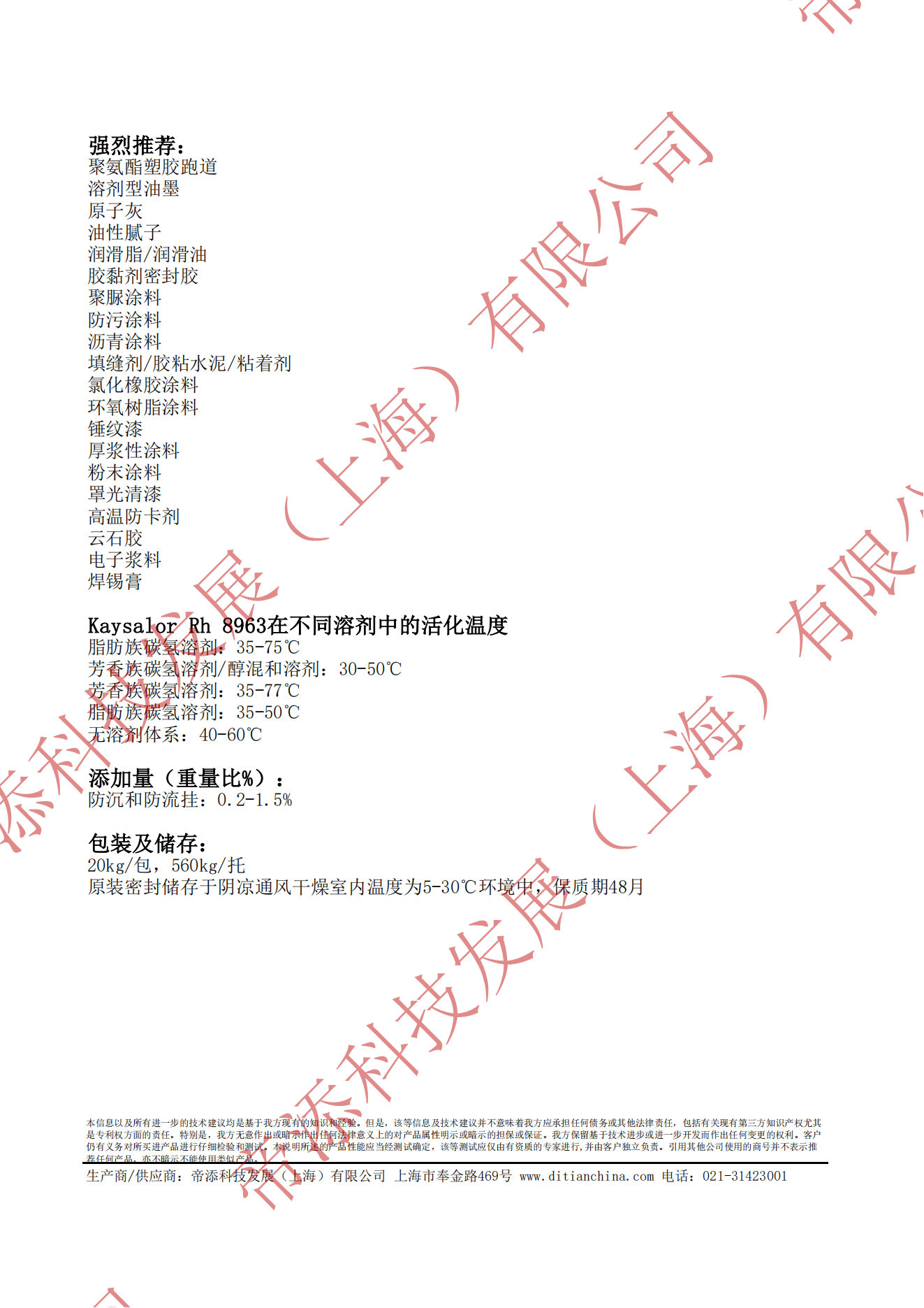 Kaysalor Rh 8963最好在研磨階段和顏填料一起添加進去。用高速分散機高速分散至上述
