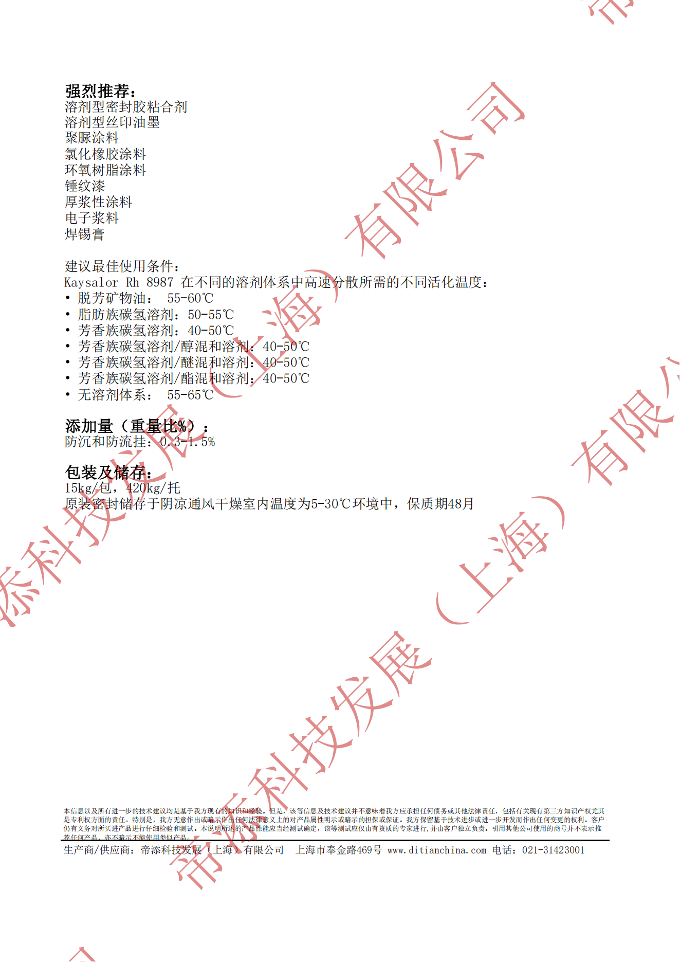 鑒于不同的配方體系,不同的生產(chǎn)工藝和不同的應(yīng)用領(lǐng)域,我們強(qiáng)烈建議在使用Kaysalor