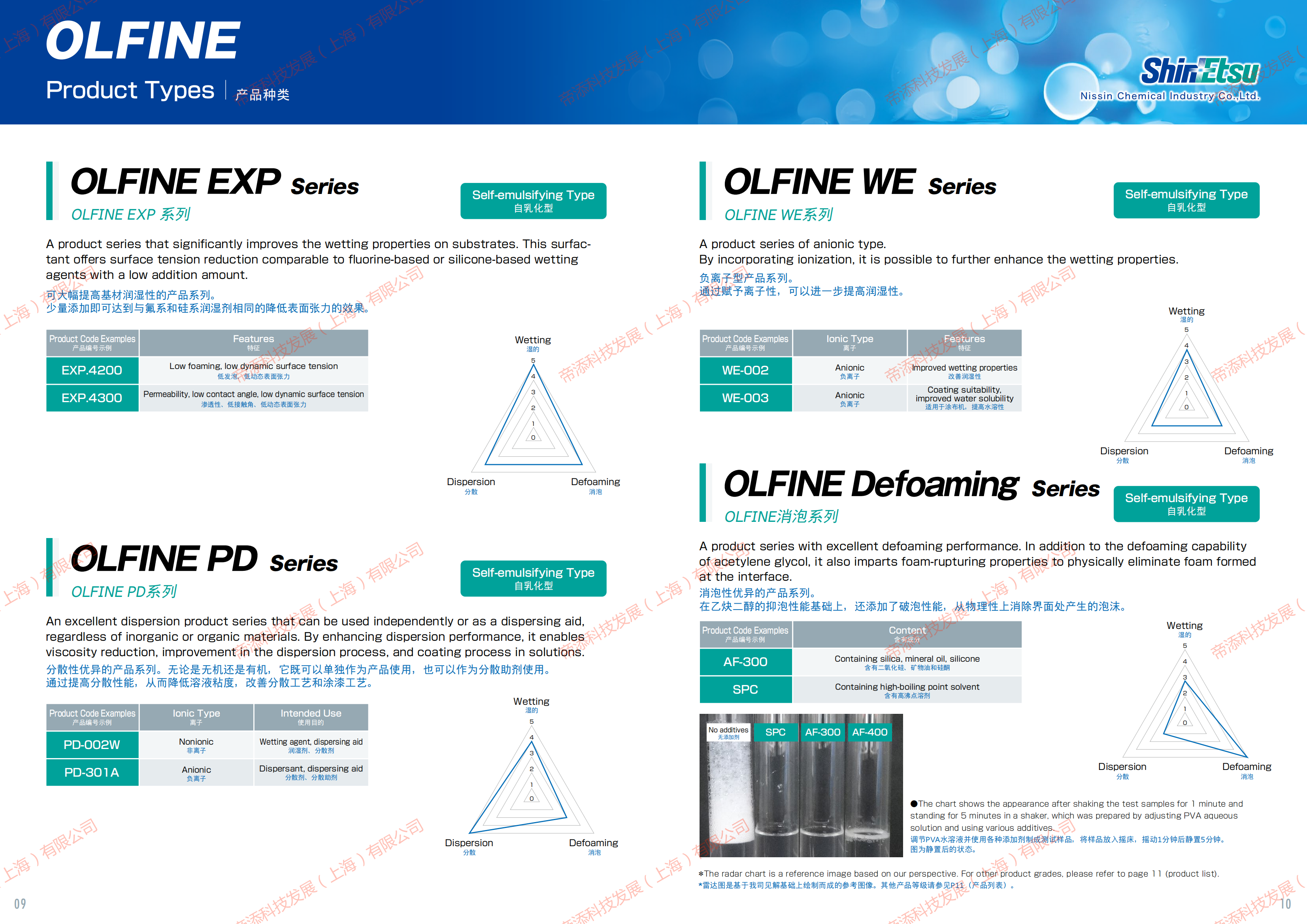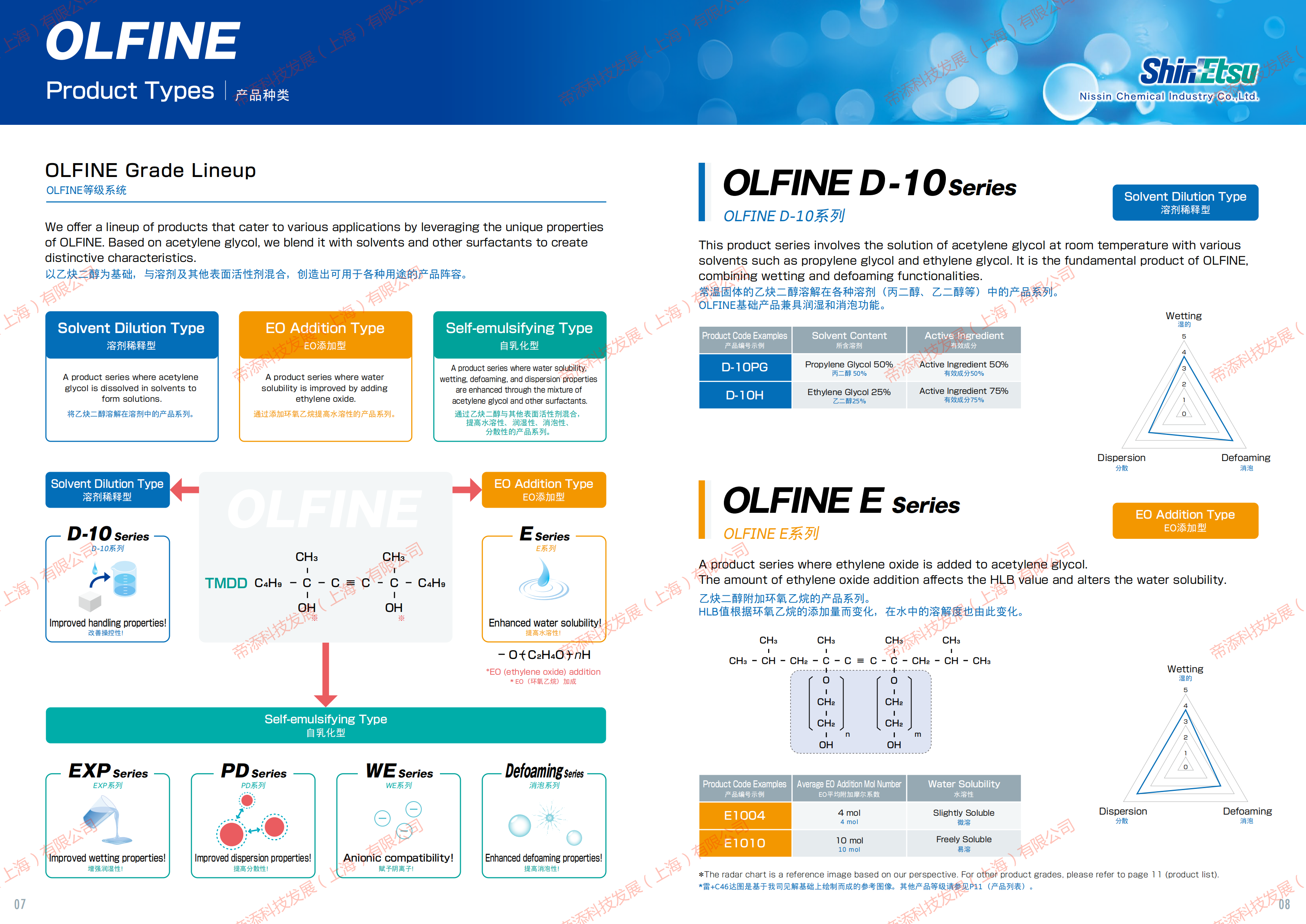 日信化學(xué)表面活性劑OLFINED-10系列,OLFINE E系列,OLFINE EXP系列,OLFINE PD系列,OLFINE WE系列, OLFINE Defoaming 系列等介紹。